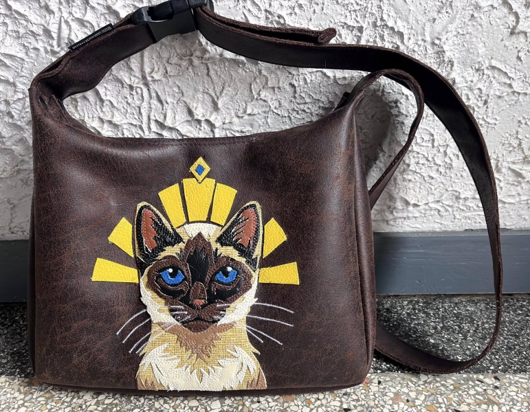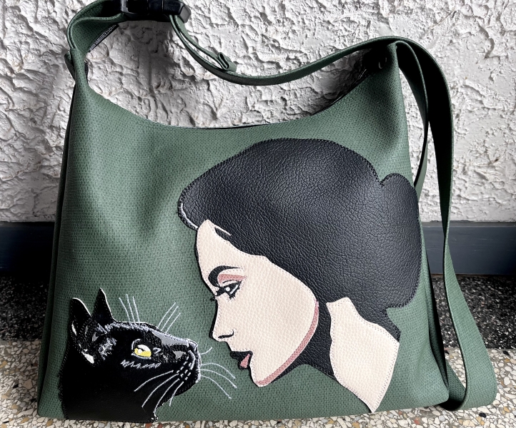 Handgemaakte zwarte poes schoudertas