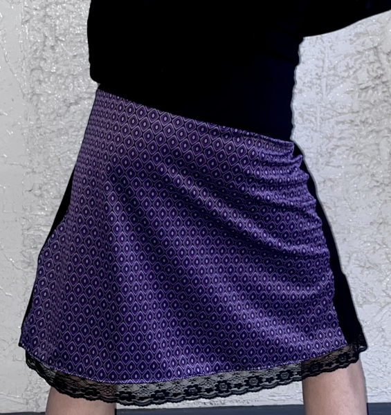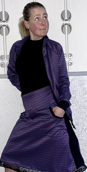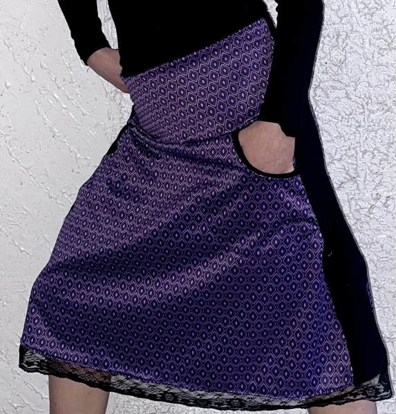 Handgemaakte alijn retro rok met zakken, brede zijboord en kantje onderaan