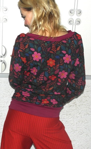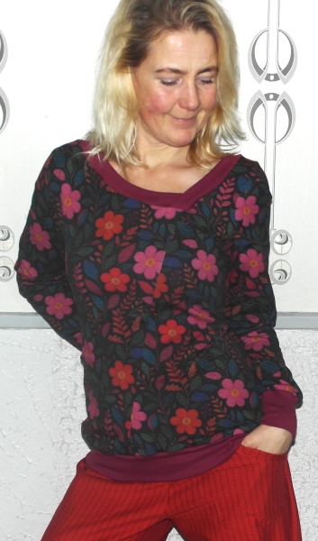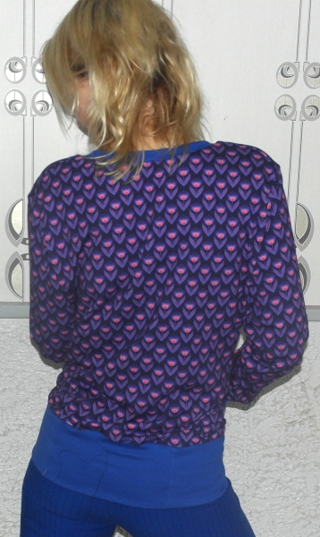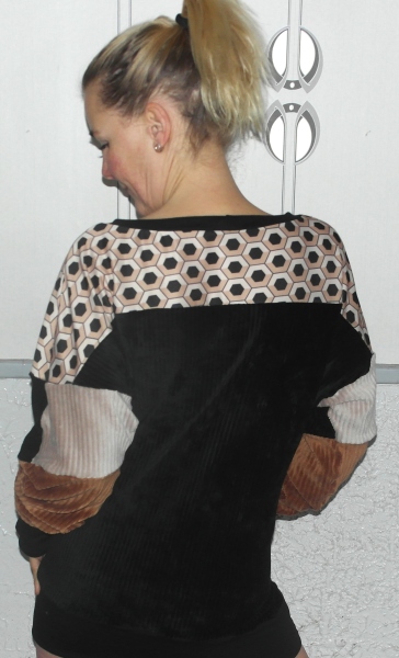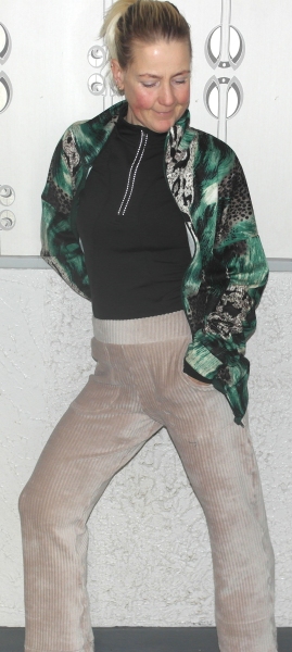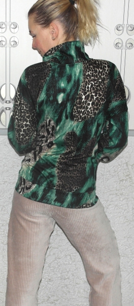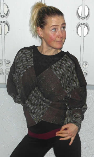 Deze stof is gemaakt van polyester, viscose, lurex, elasthaan. Het is een soepel vallende en gebreide stof. Jersey is een rekbare stof.