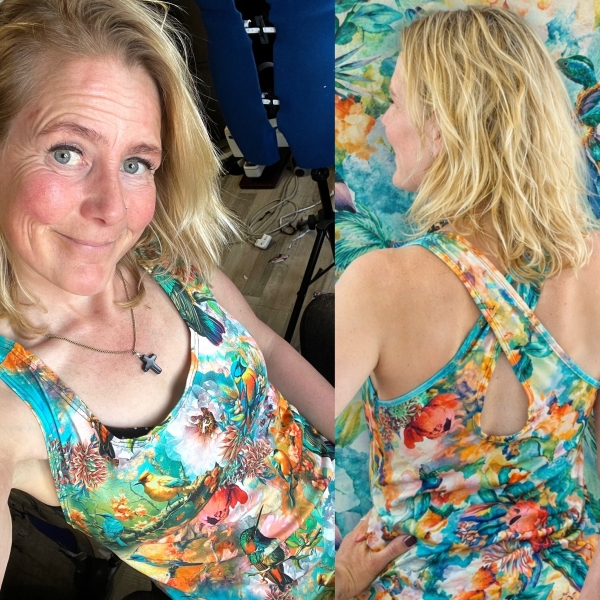 lengte van de tanktop gemeten vanaf midden schouder tot aan beneden is ongeveer 67 cm